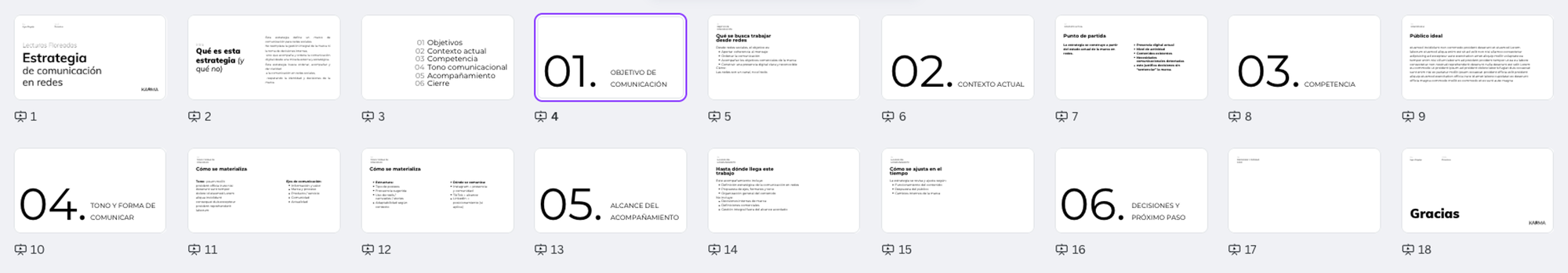 Plantilla editable en Canva para pensar y ordenar la comunicación de una marca en redes sociales. Pensada como base de trabajo para definir objetivos, tono y próximos pasos.